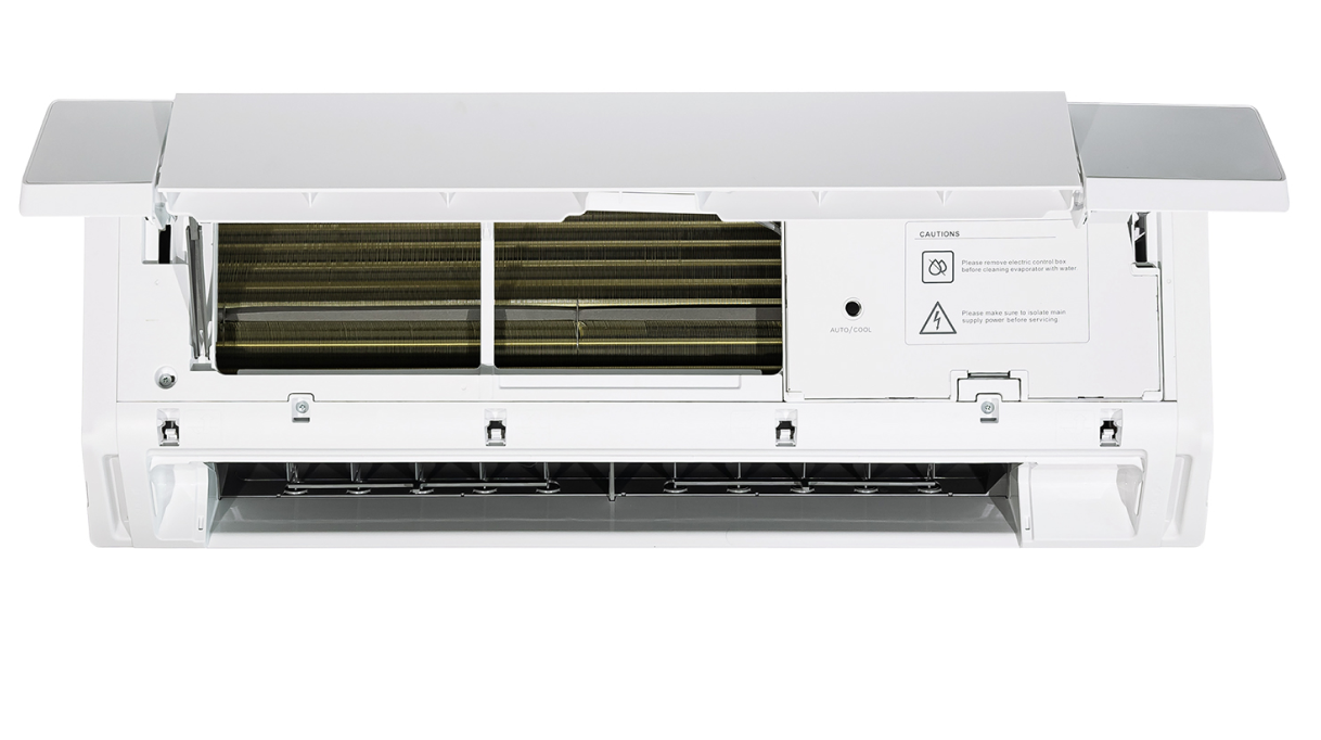 Внутренний блок обладает компактными размерами, что позволяет монтировать его очень высоко — всего в 5 см от потолка — и создавать минималистичный интерьер без излишних визуальных акцентов.